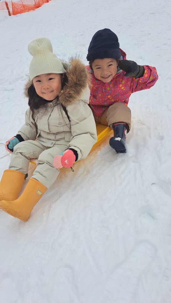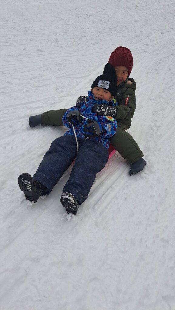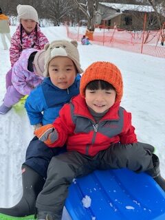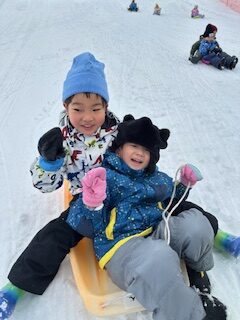 天気は晴!!みんな元気いっぱいで楽しく滑っていました。昼食後も終了時間ギリギリまで夢中でソリ遊びをしていました。帰りのバスの中で「また行きたい!」「雪!あるかなー?」などという会話があちこちで聞こえました。今回は年長組さんと年中組さんでした。30日は年少さんと未満児組のひまわり組さんが医王山スキー場へソリ遠足に来る予定をしています。