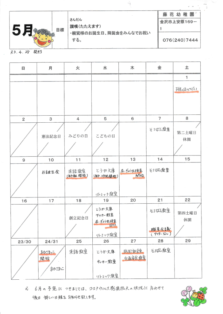 5月えんだより、行事予定
