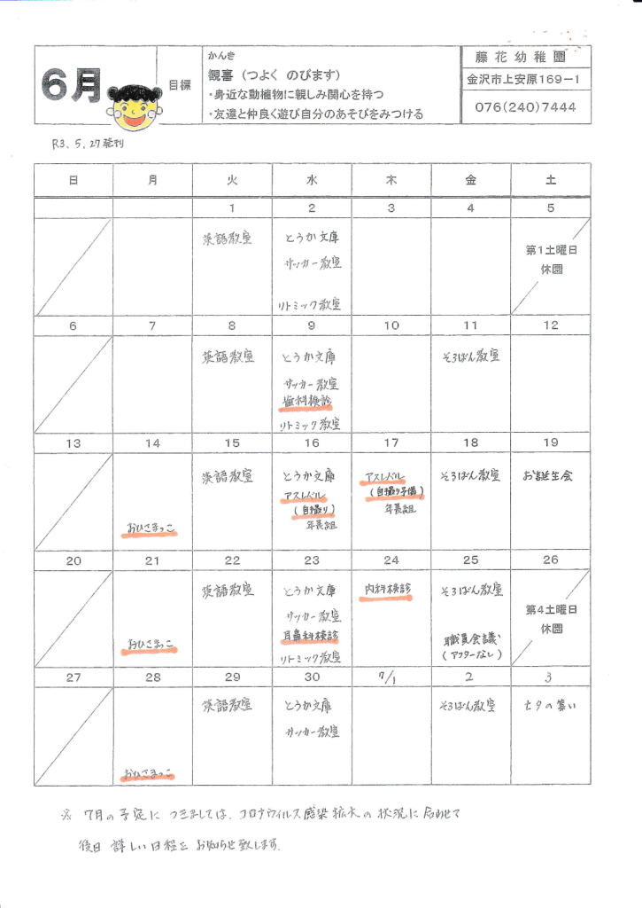 6月えんだより、行事予定