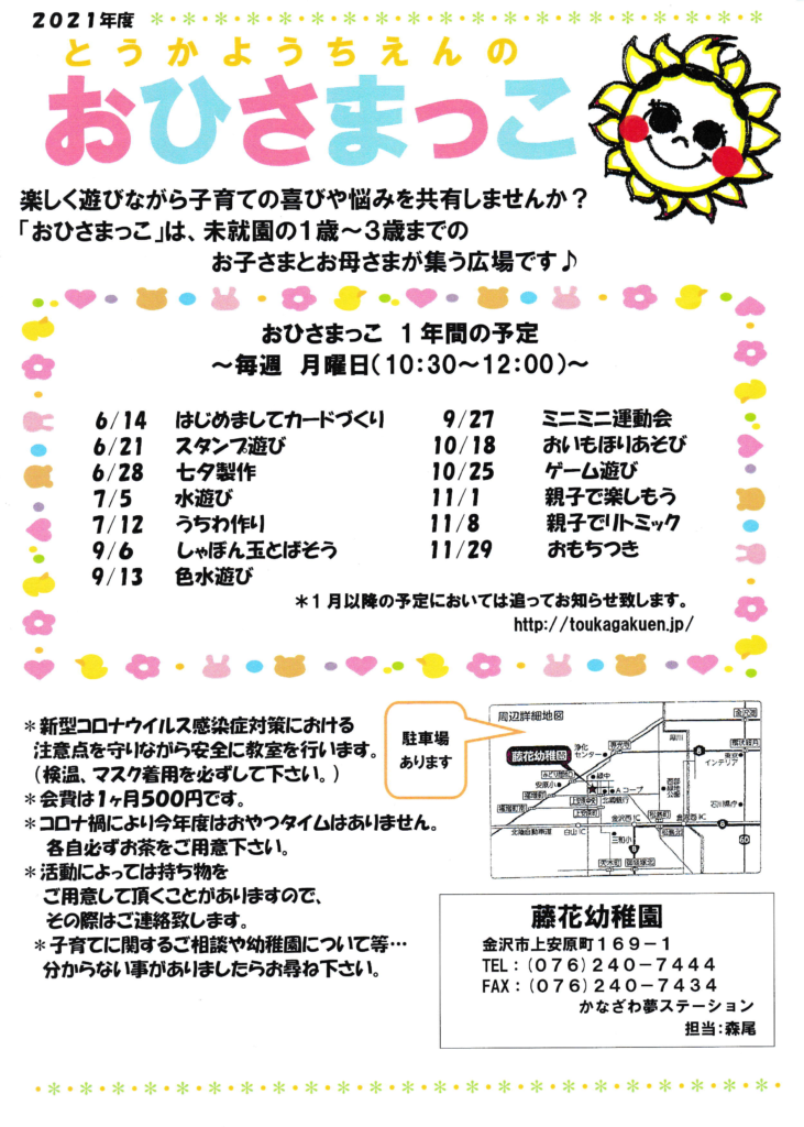 令和3年度 おひさまっこの日程はこちら