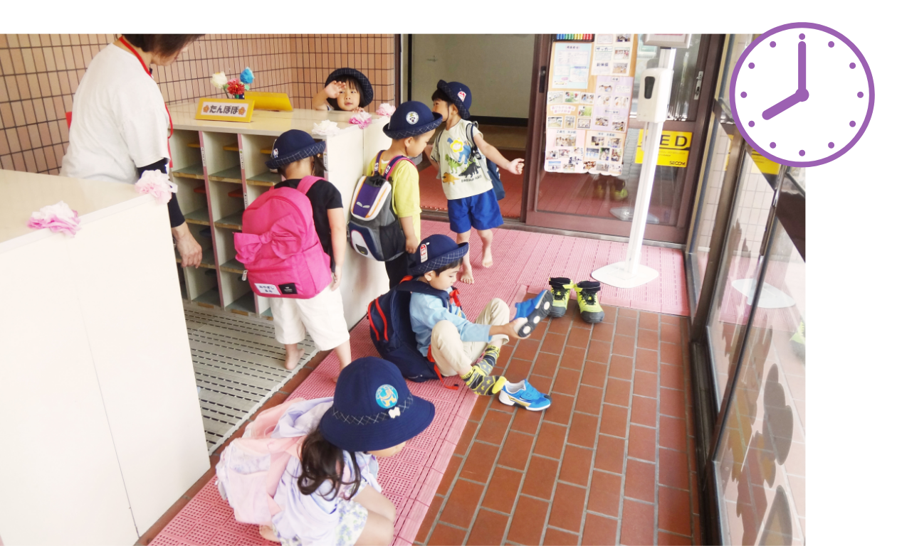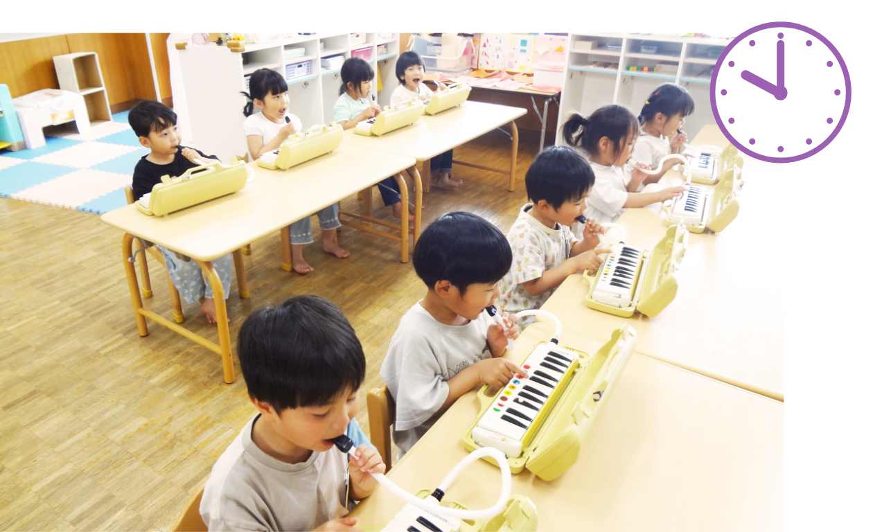 成長に必要な生活リズムを整え、規則正しい生活を送る、子どもたちの1日です。