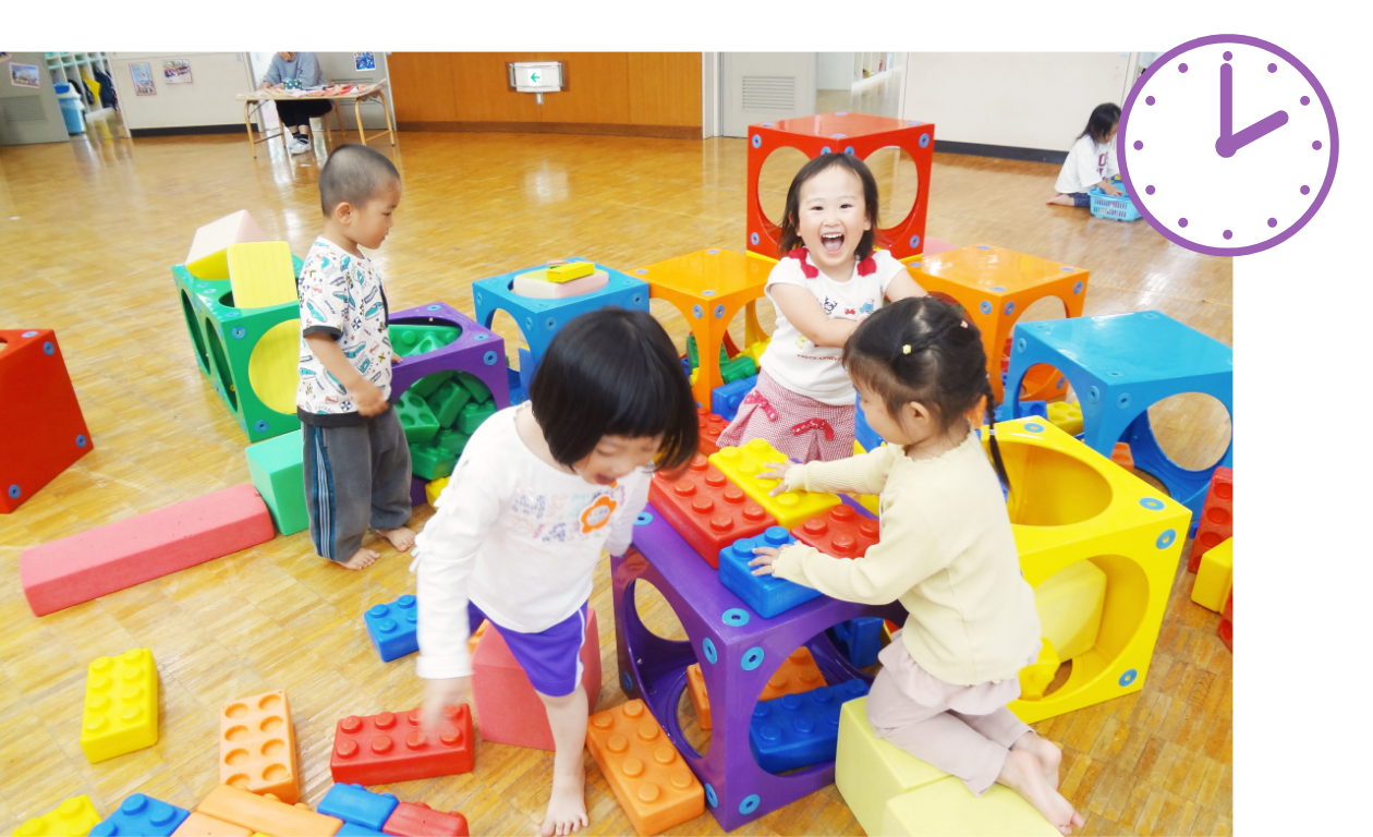 保育(8:00〜15:30) 延長保育(15:30〜17:30) お弁当(週1回/木曜) 給食(週4回/月火水金曜)