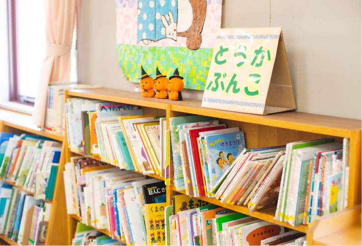 幼稚園では文庫の貸し出しも行っています。いろいろな絵本に触れることができます。