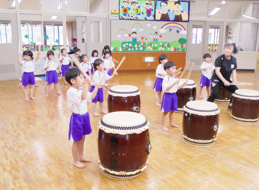 相手の音やリズムを聞いて合わせながら打つ太鼓。一年を通し人との調和を保てるように導きます。